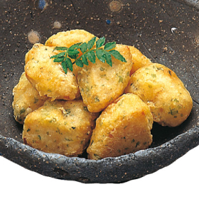 たけのこをじっくり味付けし、アオサ入りの衣で一口サイズの天ぷらにしました。おつまみに付け合せに最適です。販売価格¥1,561税込価格¥¥1,685