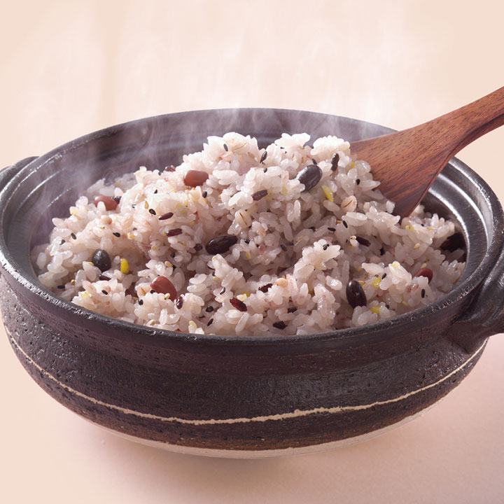 白米と一緒に入れて炊飯するだけで、発芽玄米を含む15種類の穀物が入った彩りの良い十五穀ご飯ができます。