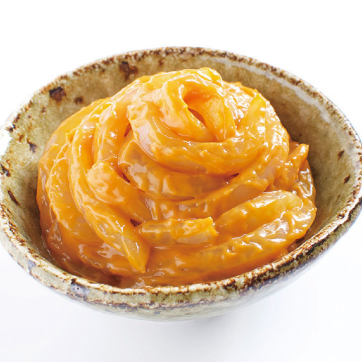 もっちりとした甲いかと、うに&かにみその濃厚な美味しさを味わって頂けます。うにとかにみそは、ざらつき感がないよう、なめらかに仕上げています。従来のかにみそ製品にはない、明るい色めです(着色は「天然系色素」を使用しています)。お酒の肴やごはんのお供に。