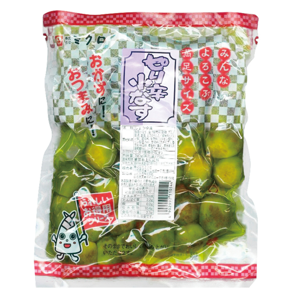 一口サイズの小なすをしょうゆ漬にし、ピリ辛に仕上げた商品です。