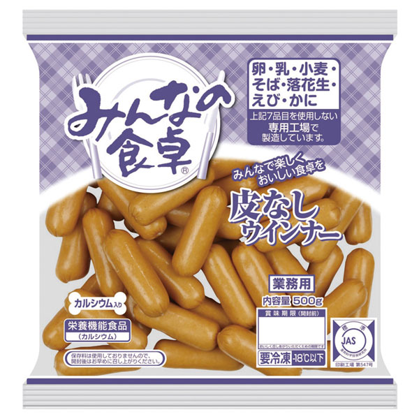 業務用食材 TOP ≫ 洋風調理食品 ≫ ウィンナー ≫ みんなの食卓 皮なしウインナー 500g(約10g×50本入) 19947