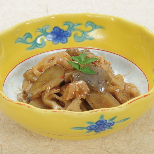 ごぼう、れんこんを主体に唐辛子と黒胡椒の辛味、にんにく、生姜の味を程よく入れ、焼肉風の味付けに仕上げました。お弁当や小鉢、お酒のおつまみとしても最適な商品です。