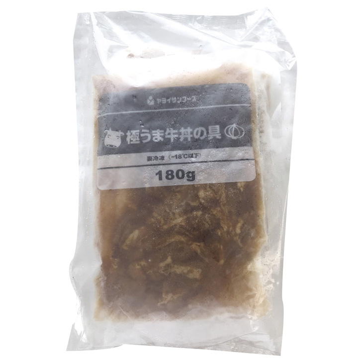 ■原材料:牛肉(アメリカ)、たまねぎ、牛脂、液体塩こうじ(米こうじ、食塩)、タレ[しょうゆ、糖類(砂糖、水あめ)、野菜(たまねぎ、ねぎ、はくさい、にんじん)、発酵調味料、牛脂、植物油脂、肉エキス、ガーリックペースト(にんにく、食塩)]/カラメル色素、調味料(アミノ酸等)、酸味料、甘味料(キシロース)、(一部に小麦・牛肉・大豆・鶏肉・豚肉を含む)
