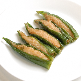 オクラに海老のすり身を詰めた商品です。オクラの風味とえびの甘味がマッチした商品です。1袋当たり35本入り商品です。