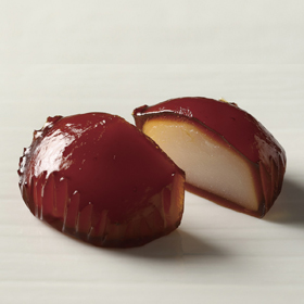甘辛く味付けしたタレ風味の生地で、やわらかい団子風の生地を包みました。団子特有のかたさを抑えることで、食べやすく仕上げています。