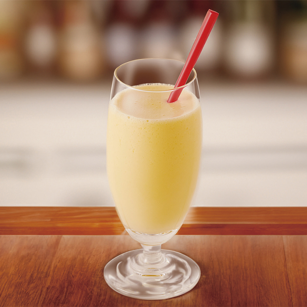 バナナ、パインアップル、マンゴー、リンゴ、ミカンの5種類の果実をブレンドした希釈用飲料です。牛乳と1対3の割合で混ぜれば、関西の純喫茶で提供されてきた“大阪ミックスジュース”の味わいを手軽に再現できます。