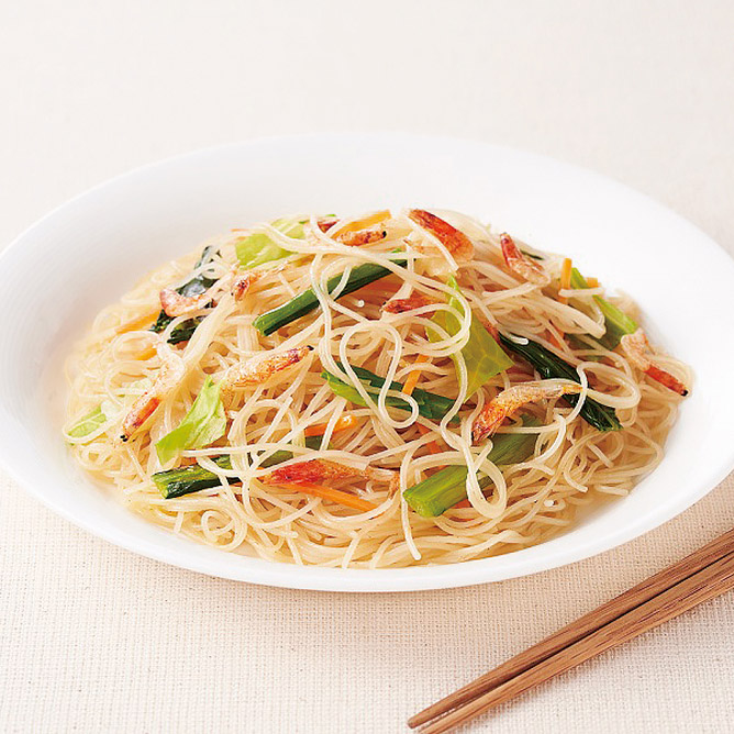 彩り良い桜えびを使用した、風味豊かであっさりとした味付けの焼ビーフンです。
