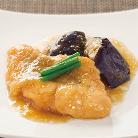 粉付けし揚げたカレイとナスをおろしダレでさっぱりと仕上げました。解凍するだけで食べられます。