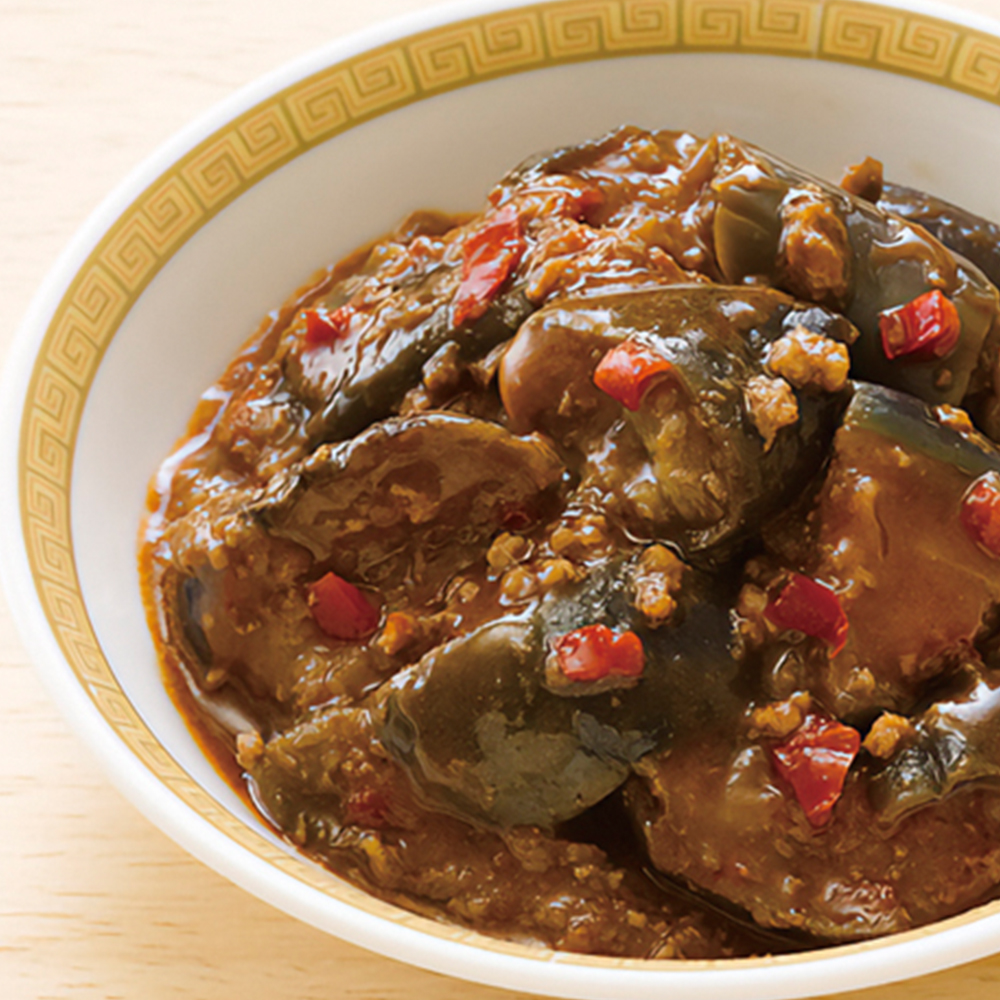 ■原材料:なす、大豆油、豚肉、甜面醤(小麦を含む)、異性化 液糖、しょうゆ、赤パプリ