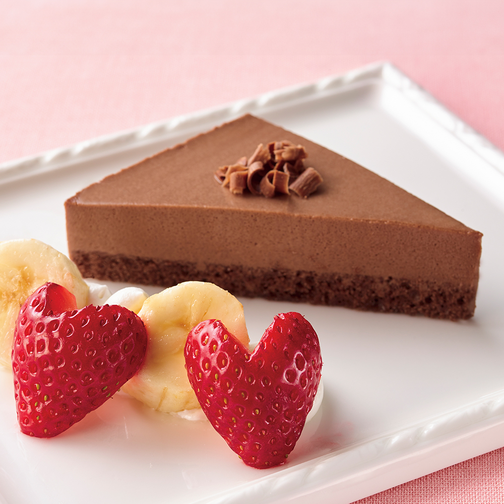 カカオマスとココアパウダーを使用し、カカオのコクと香りを生かした口溶けなめらかなチョコムースケーキです。
