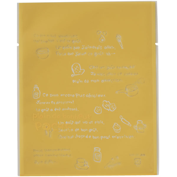 【規格内容】幅130×長さ160mm【形状】平袋(二方貼り)【材質】バリアOP/DL/LLDPE【加工】Uノッチ(左右)【補足1】脱酸素剤対応、乾燥剤対応【補足2】使い捨て【色】透明茶【柄】柄付【キーワード】英字柄、マチ無し、焼き菓子用袋、ラッピング、パッケージ、個包装用袋、包材、クッキー、マドレーヌ、フィナンシェ、マカロン、ガスバリア、脱酸素剤対応袋、焼き菓子袋、乾燥剤対応袋、クッキー袋【商品特徴】おもて面にフランス語、うら面には手書きのイラストが入ったデザインのガス袋。