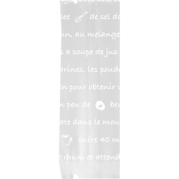 【規格内容】仕上幅60(マチ50)×長さ200mm【厚み】0.05mm【形状】横ガゼット袋(背貼り)【材質】OPP/DL/CPP【加工】Vノッチ(上下)【補足1】乾燥剤対応【補足2】使い捨て【色】透明白【柄】柄付【キーワード】英字柄、マチあり、焼き菓子用袋、ラッピング、洋菓子、スイーツ袋、パッケージ、個包装用袋、包材、クッキー、マドレーヌ、フィナンシェ、マカロン、英字柄(フランス語)【商品特徴】フランス語と手書きのイラストがかわいい、クッキー用の袋。 ※乾燥剤に対応しています。