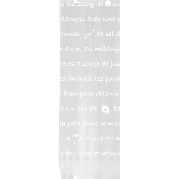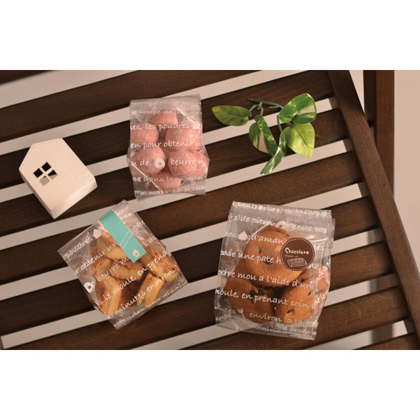 【規格内容】仕上幅70(マチ60)×長さ230mm【厚み】0.05mm【形状】横ガゼット袋(背貼り)【材質】OPP/DL/CPP【加工】Vノッチ(上下)【補足1】乾燥剤対応【補足2】使い捨て【色】透明白【柄】柄付【キーワード】英字柄、マチあり、焼き菓子用袋、ラッピング、洋菓子、スイーツ袋、パッケージ、個包装用袋、包材、クッキー、マドレーヌ、フィナンシェ、マカロン、英字柄(フランス語)【商品特徴】フランス語と手書きのイラストがかわいい、クッキー用の袋。 ※乾燥剤に対応しています。