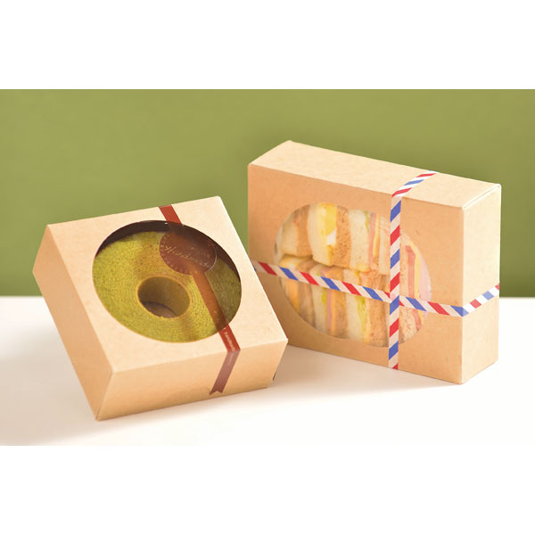 【規格内容】幅105×奥行105×高さ45mm【厚み】310g/平方メートル【販売形態】折蓋型【形状】のせ蓋【補足2】使い捨て【色】茶【柄】柄無【キーワード】窓付きギフトボックス、化粧箱、キャラメル箱、ギフト箱、おしゃれ、サービス箱、洋菓子、テイクアウト用【商品特徴】中身をアピールできる窓付ボックス。窓付の箱。中面がフィルム加工されています。バウムクーヘンなどを直接入れることもできます。 ※中面フィルム加工されています。