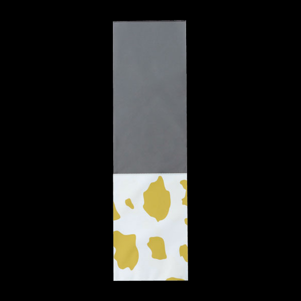 【規格内容】幅90×長さ320mm※下から130mmの位置にミシン目有り【厚み】0.03mm【材質】OPP【補足2】使い捨て【色】透明茶【柄】柄付【キーワード】牛乳、ロングパン袋、ドッグパン袋、バケットサンドイッチ袋、ミシン目付き、洋菓子店向け、パン屋さん向け、ベーカリー、PPパン袋、牛柄、ホルスタイン柄【商品特徴】ミルクフランス、ピーナッツフランス等に最適!!袋にミシン目が付いておりますので切離しができ、手を汚さず食べられます。※外装:クラフト包装※100枚PE袋