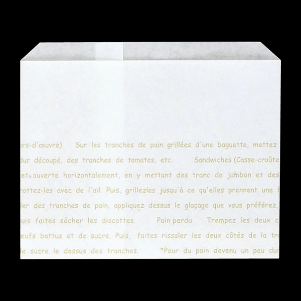 業務用食材 TOP ≫ パン・菓子包装 ≫ パン袋 ≫ 6639 レシピ柄耐油紙袋 #182 小 (180X130+15mm) 100袋