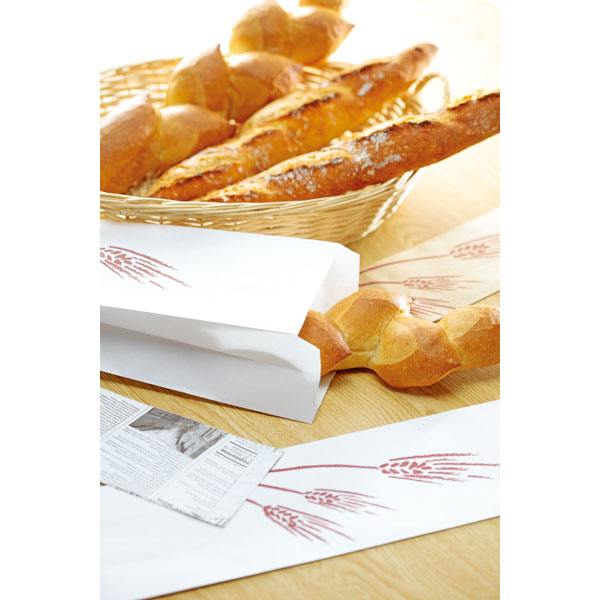 業務用食材 TOP ≫ パン・菓子包装 ≫ パン袋 ≫ 4991 フランスパン紙袋 麦の穂(茶) #74 ワイド (130(80)X475+18) 50袋