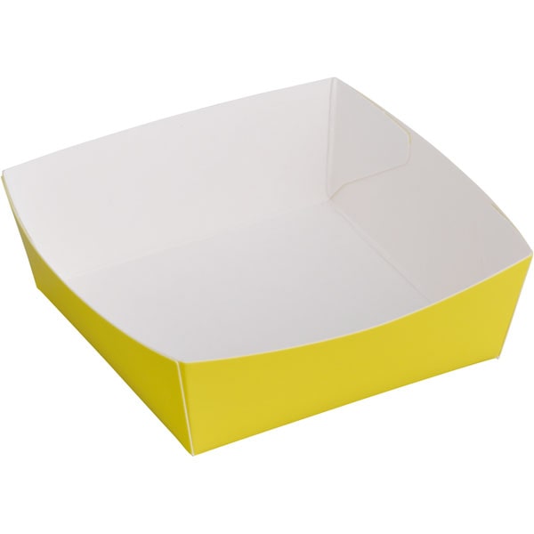 【規格内容】底(幅65×奥行65)×高さ25mm【厚み】300g【容量】125ml【耐冷耐熱温度】耐冷なし耐熱180~200℃【材質】カード紙【補足2】使い捨て【色】白黄【柄】柄付【キーワード】洋菓子、ケーキ、ベーキングカップ、ベーキングトレー、パウンドケーキ焼成紙型、紙パウンド型【商品特徴】ベーキングカップとしても使えるカラーバリエーション豊富な紙製トレー。マットOPPなどのシートと合わせてお使いください。