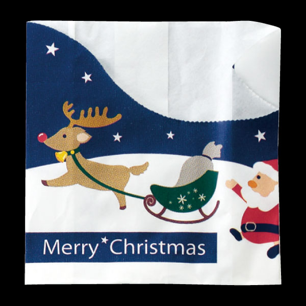 【規格内容】仕上幅110(マチ40)×長さ115mm【材質】耐油【補足1】耐油加工【補足2】使い捨て【色】白紺赤茶【柄】柄付【季節】12月【イベント・行事】クリスマス【キーワード】サンタクロース、トナカイ、クリスマス柄、耐油袋、ホットスナック袋、ドーナッツ袋、テイクアウト袋、マチあり、食べ歩きグルメ、惣菜店向け、屋台向け【商品特徴】※100枚PE袋