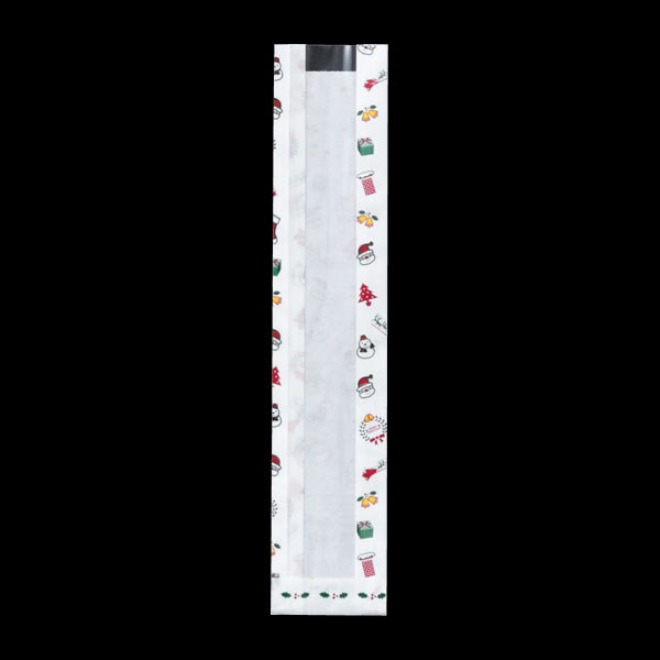 【規格内容】仕上幅80(マチ45)×長さ375+ベロ18mm【材質】紙【補足1】耐油加工【補足2】使い捨て【色】白赤緑黄【柄】柄付【季節】12月【イベント・行事】クリスマス【キーワード】サンタクロース、雪だるま、ツリー、トナカイ、クリスマス柄、窓付きバタール袋、窓付きフランスパン袋、窓付きバケット袋、英字柄、パン屋さん向け、ベーカリー、見せるラッピング【商品特徴】※100枚PE袋