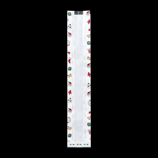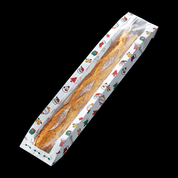 【規格内容】仕上幅115(マチ70)×長さ655+ベロ18mm【材質】紙【補足2】使い捨て【色】白赤緑黄【柄】柄付【季節】12月【イベント・行事】クリスマス【キーワード】サンタクロース、雪だるま、ツリー、トナカイ、クリスマス柄、窓付きバタール袋、窓付きフランスパン袋、窓付きバケット袋、英字柄、パン屋さん向け、ベーカリー、見せるラッピング【商品特徴】※50枚PE袋