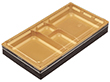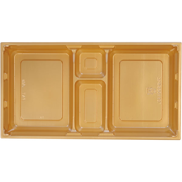 【規格内容】幅269×奥行144×高さ33mm【容量】ご飯約125g【耐冷耐熱温度】80℃【販売形態】中仕切のみ【材質】PS、PP(ポリプロピレン)【補足2】使い捨て【色】金【柄】柄無【キーワード】高級弁当、会席料理【商品特徴】お客様の満足感と内容量の最適化を両立させた感覚に訴求する新たな折箱です。縁+底+蓋をパーツ別にオーダーできるため多様なメニューに対応します。 ※縁・底・蓋それぞれパーツ別での納品となります。