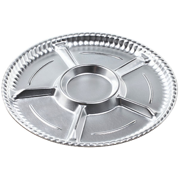 業務用食材 TOP ≫ 消耗品 ≫ 弁当・テイクアウト容器 ≫ 仕切り付き弁当容器 ≫ ティアラプラッター丸-50 本体 銀 10枚 Y002020