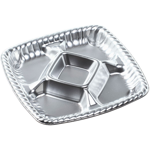 業務用食材 TOP ≫ 消耗品 ≫ 弁当・テイクアウト容器 ≫ 仕切り付き弁当容器 ≫ ティアラプラッター220 本体 銀 25枚 Y002030