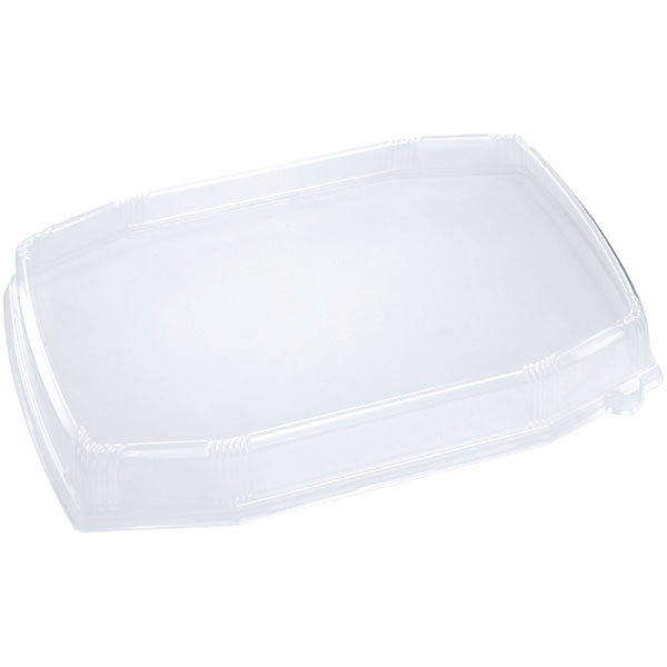 【規格内容】幅420×奥行272×高さ50(セット時の蓋の高さ39)mm【耐冷耐熱温度】60℃【販売形態】蓋のみ【形状】外嵌合蓋【材質】エコAPET【補足2】使い捨て【色】透明【柄】柄無【季節】1月、4月、5月、8月【キーワード】正月、ゴールデンウィーク、GW、お盆、四角、八角型【商品特徴】重厚感のある八角型オードブル容器。重量感あるハカマ形状と足ぐりが高級感を演出、蓋の形状を内落としにすることにより水滴もれを抑制します。蓋の形状を内落としにすることにより水滴もれを抑制します。