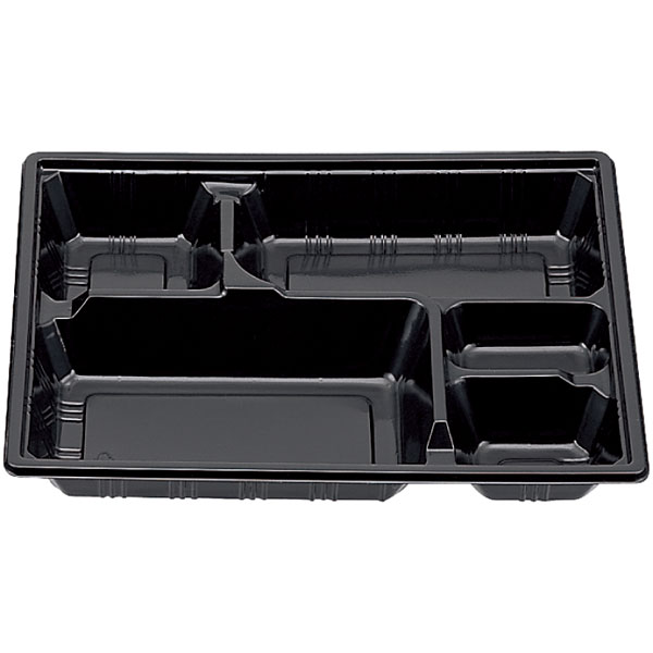 業務用食材 TOP ≫ 消耗品 ≫ 弁当・テイクアウト容器 ≫ 仕切り付き弁当容器 ≫ KS-84B 黒 透明(平) 蓋セット 50枚 Y002110
