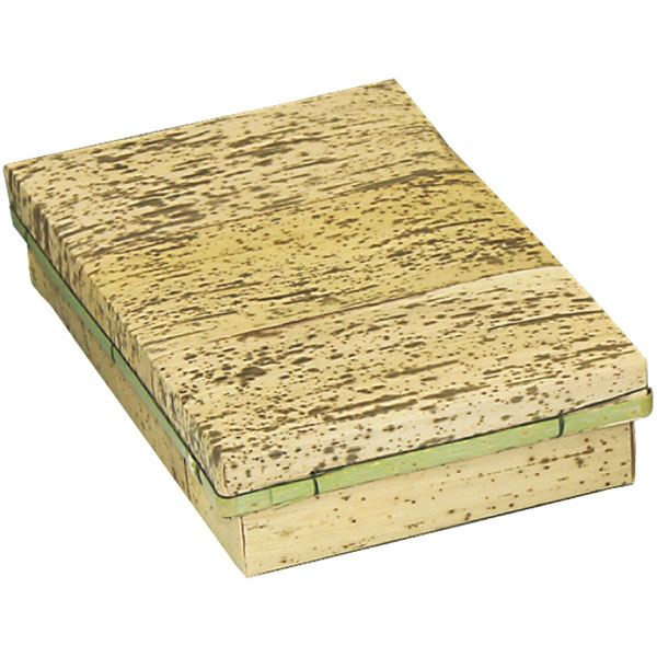 【規格内容】幅210×奥行130×高さ45mm【販売形態】本体・蓋セット【形状】のせ蓋【材質】竹皮【補足1】天然素材【補足2】使い捨て【色】茶【柄】柄付【区画数】01【キーワード】弁当容器、和菓子容器、フタ底別型、天然素材【商品特徴】天然素材を使用した素朴さと懐かしさを感じさせる容器です。竹皮を使用した容器は竹本来が持つ通気性と抗菌性で鮮度保持に効果があるといわれています。 ※天然素材を使用した手作り加工品のため、直射日光の当たる場所や、湿度の高いところ、あるいは極度に乾燥した場所での保管はお避けください。