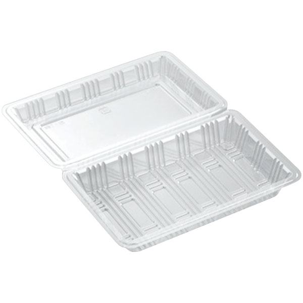 【規格内容】幅219×奥行138×本体の高さ30(蓋の高さ20)mm【耐冷耐熱温度】80℃【販売形態】折蓋型【形状】のせ蓋【材質】OPS【補足2】使い捨て【色】透明【柄】柄無【イベント・行事】お持ち帰り、学園祭、バザー、お祭り、夏祭り、文化祭、屋台、出店、露店【キーワード】フードパック、テイクアウト容器、惣菜店向け、屋台向け【商品特徴】惣菜からおこわ、たこ焼き、焼き鳥バイキングまで、どの惣菜メニューにも使える定番容器です。