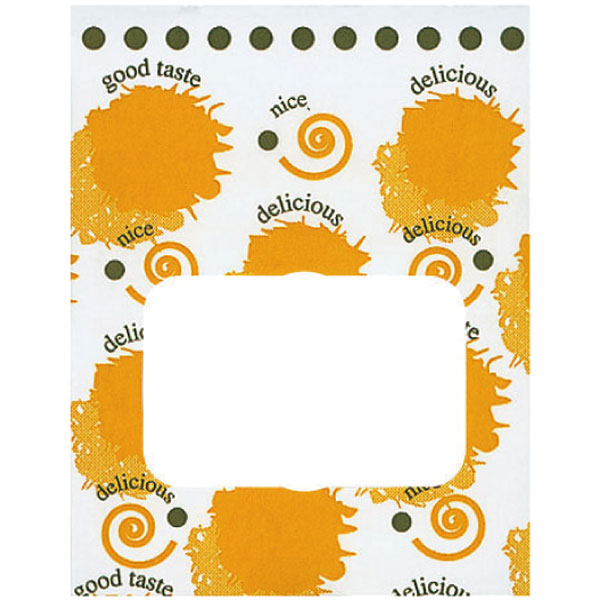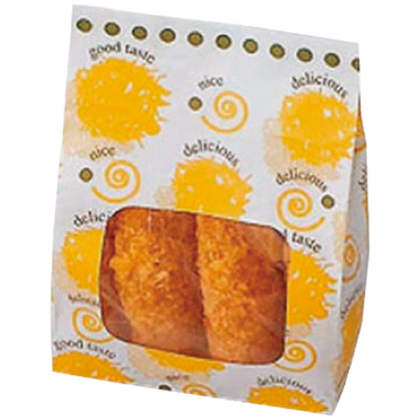 【規格内容】幅130×マチ80×高さ165mm【材質】本体:耐油耐水紙、窓部:OPPボードン【補足1】耐油・耐水加工【補足2】使い捨て【色】白橙【柄】柄付【イベント・行事】お持ち帰り、学園祭、バザー、お祭り、夏祭り、文化祭、屋台、出店、露店【キーワード】窓付き角底紙袋、見せるラッピング、耐油袋、ホットスナック袋、ドーナッツ袋、テイクアウト袋、マチあり、食べ歩きグルメ、惣菜店向け、屋台向け【商品特徴】口を閉じたまま中が見える紙袋ですので、ディスプレイ効果が抜群です。耐油耐水紙を使用しているため、油もの等に対応できます。袋の内側にポリエチレンをラミネート。オープンタイプで、商品が入れやすく食べやすい形状です。惣菜、クロワッサン、揚げパン、ドーナッツなどに。