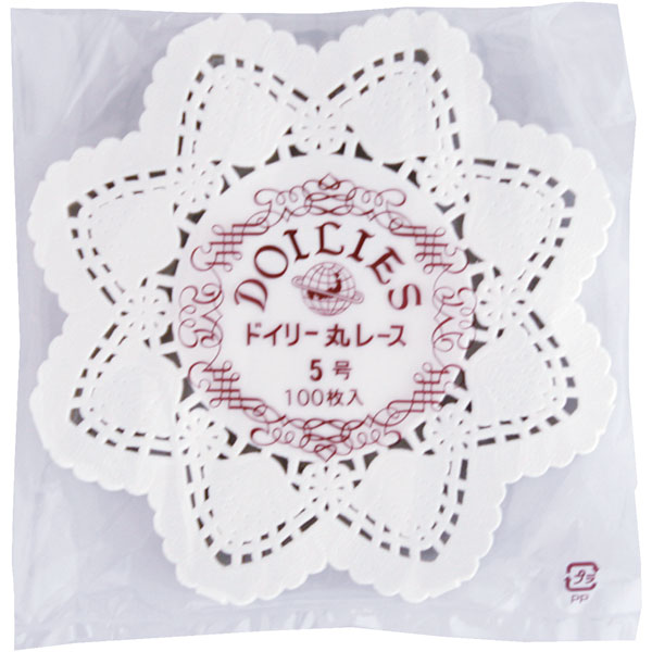 丸型ドイリーレース(N)白#5 100枚入 1袋 Y004345