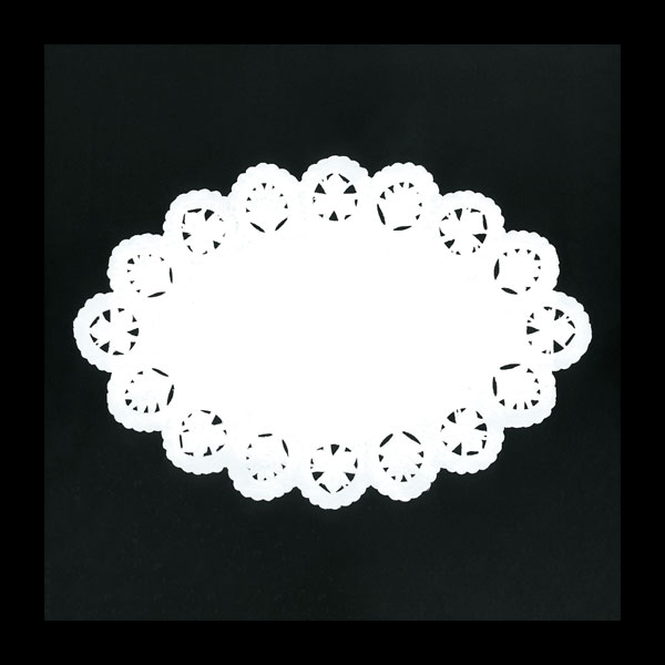 業務用食材 TOP ≫ パン・菓子包装 ≫ ケーキトレー ≫ 小判型ドイリーレース(A柄)白#14 100枚入 1袋 Y004354