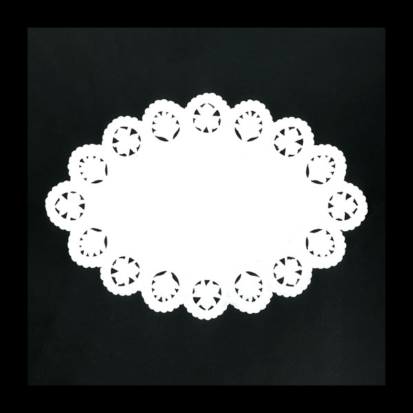 業務用食材 TOP ≫ パン・菓子包装 ≫ ケーキトレー ≫ 小判型ドイリーレース(A柄)白#16 100枚入 1袋 Y004355