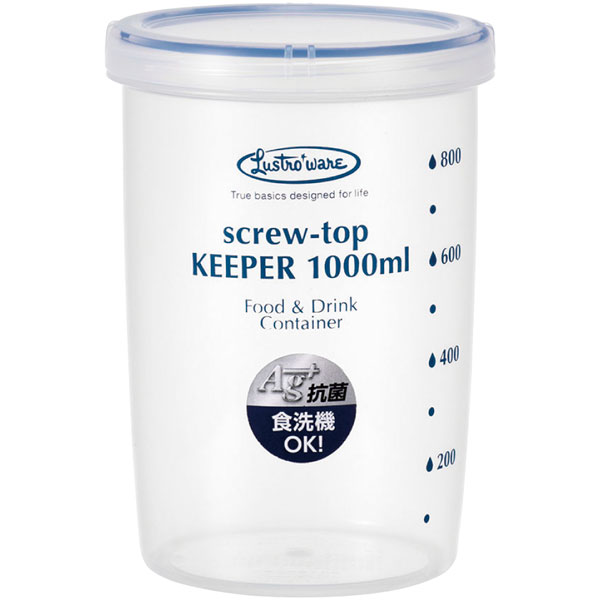 【規格内容】直径Φ109×高さ152mm【容量】1000ml【耐冷耐熱温度】耐熱−20℃~140℃【材質】本体・蓋:PP(ポリプロピレン)パッキン:シリコーンゴム【補足1】銀イオンで抗菌、レンジOK、レンジ対応(本体のみ)、自動洗浄機OK(本体のみ)、高品質【補足2】再利用【色】透明【柄】柄付【キーワード】食品保存容器【商品特徴】密閉性・開閉性・透明性などの基本機能が充実の使いやすい密封容器がさらに高機能になりました。シリコンパッキン付きの筒型容器で、密封力の高さが特徴です。臭いの強い食品の収納に威力を発揮します。食洗機対応・抗菌仕様となり、さらに便利になりました。カラーパッキンが優れた密閉性を発揮。気になる汁もれやニオイもれも強力密封。フタを素早く開閉できるクイック構造。フタは、約1/6回転(約60度)で開閉できる。フタの外周にはシボ加工を施し、スベリ止めを4箇所に配置。ニーズが高い透明性の容器です。