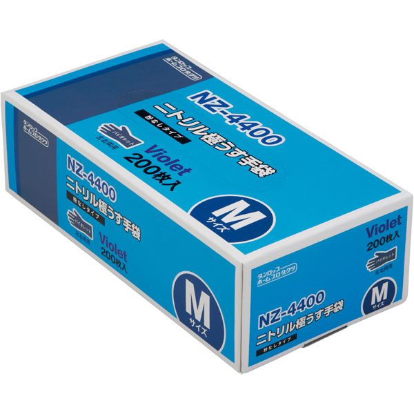 業務用食材 TOP ≫ ユニフォーム ≫ 三角巾・四角巾・キャップ ≫ ニトリル極薄手袋 NZ4400 M 粉無 バイオレット 200枚入 1箱 Y006788