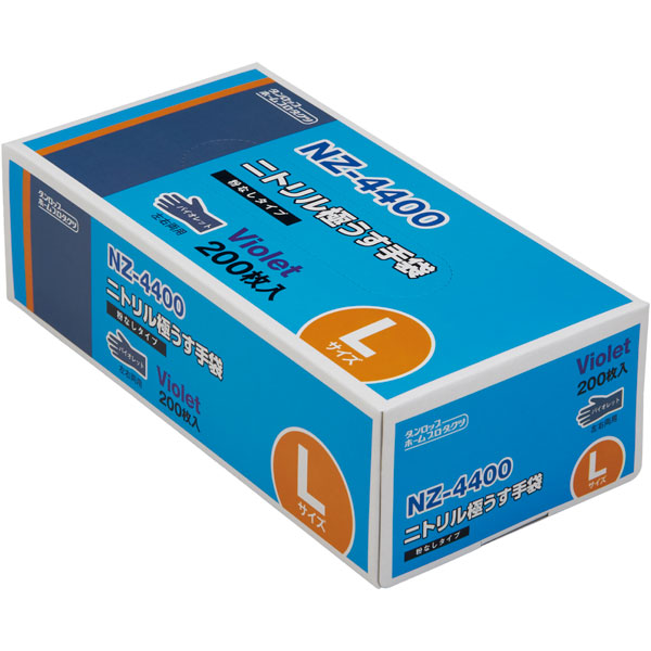業務用食材 TOP ≫ ユニフォーム ≫ 三角巾・四角巾・キャップ ≫ ニトリル極薄手袋 NZ4400 L 粉無 バイオレット 200枚入 1箱 Y006789