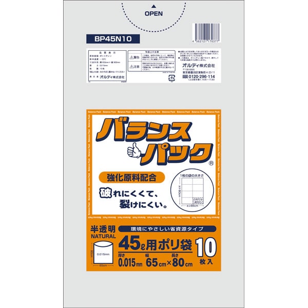 業務用食材 TOP ≫ 消耗品 ≫ ポリ袋・レジ袋・ゴミ袋 ≫ BP45N10 バランスパック 45L 半透明 10P 1冊 Y007503