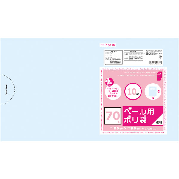 プラスプラスペール用ポリ袋70L 透明 10枚入 PP-N70-10 1冊 Y007536