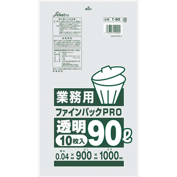 業務用食材 TOP ≫ 消耗品 ≫ ポリ袋・レジ袋・ゴミ袋 ≫ T-90 ファインパック業務用PRO90L 透明 10枚入 1冊 Y007537