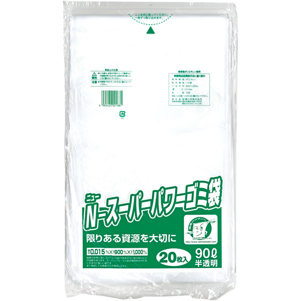 業務用食材 TOP ≫ 消耗品 ≫ ポリ袋・レジ袋・ゴミ袋 ≫ N-スーパーパワー ゴミ袋 90L ナチュラル 20枚 Y007539