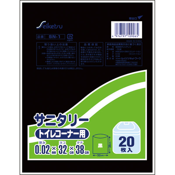 業務用食材 TOP ≫ 消耗品 ≫ ポリ袋・レジ袋・ゴミ袋 ≫ SN-1 サニタリートイレコーナー用 黒 20枚入 1冊 Y007546