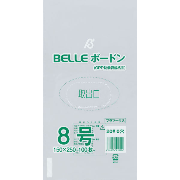 業務用食材 TOP ≫ 消耗品 ≫ ポリ袋・レジ袋・ゴミ袋 ≫ 20# BELLEボードン8号 0穴 100枚 Y007662