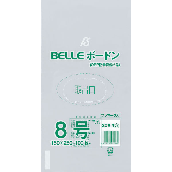 業務用食材 TOP ≫ 消耗品 ≫ ポリ袋・レジ袋・ゴミ袋 ≫ 20# BELLEボードン8号 4穴 100枚 Y007668