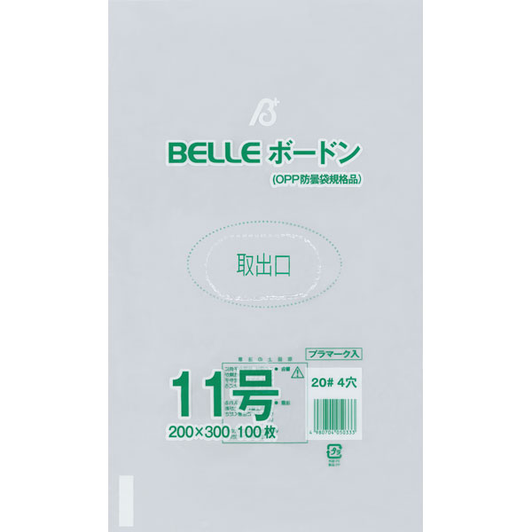 業務用食材 TOP ≫ 消耗品 ≫ ポリ袋・レジ袋・ゴミ袋 ≫ 20# BELLEボードン11号 4穴 100枚 Y007671