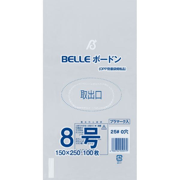 業務用食材 TOP ≫ 消耗品 ≫ ポリ袋・レジ袋・ゴミ袋 ≫ 25# BELLEボードン8号 0穴 100枚 Y007699
