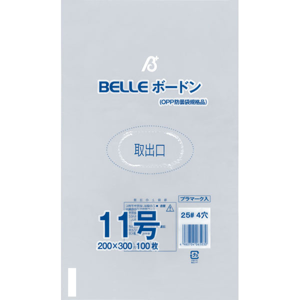 業務用食材 TOP ≫ 消耗品 ≫ ポリ袋・レジ袋・ゴミ袋 ≫ 25# BELLEボードン11号 4穴 100枚 Y007708