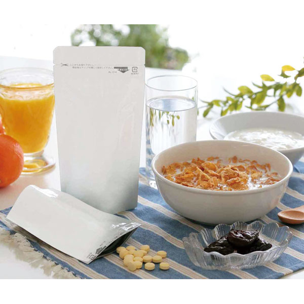 【規格内容】チャック上32+チャック下160×袋幅100(底ガゼット幅30)mm【厚み】PET12/PE15/AL7/PE80【容量】210ml【形状】チャック付スタンド袋(二方貼り+船底シール)【材質】PET/AL(アルミ)/PE(ポリエチレン)白色印刷【補足1】国内生産品、食品衛生法適合、易開封カットテープ加工【補足2】使い捨て【色】白【柄】柄無【キーワード】ラミネート袋、チャック付き袋、アルミ、チャック袋、食品保存用、スタンドバッグ、ガスバリア、脱酸素剤対応袋、焼き菓子袋、乾燥剤対応袋、クッキー袋【商品特徴】人気のホワイトパウチ。ガスバリアー性、防湿性、遮光性などにおいて最上級のPET/AL/PEに清潔感のある白色印刷を施したスタンドパックタイプ。乾燥剤、脱酸素剤がご使用になれます。密封にはヒートシール機が必要です。食品衛生法容器包装規格適合品。健康食品、乾燥農産加工品、乾燥海産加工品などラベルを貼ってご利用いただけます。開けやすく閉めやすい、かつ高い密閉性を実現した、チャック付き規格袋「セイニチグリップス」の高機能ラミネートタイプです。用途に合わせてお選びください。安全で安心な日本製です。 ※無くなり次第廃盤となります。